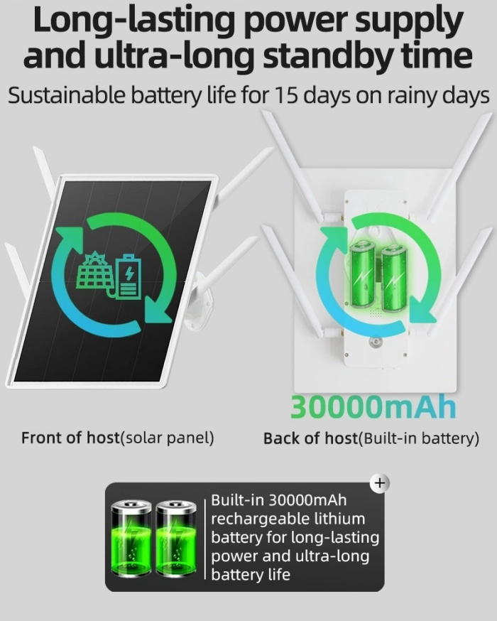 • NVR Powerhouse: Equipped with a 30,000mAh high-capacity battery and a 15W solar panel for continuous operation.