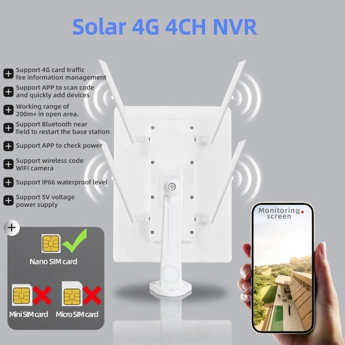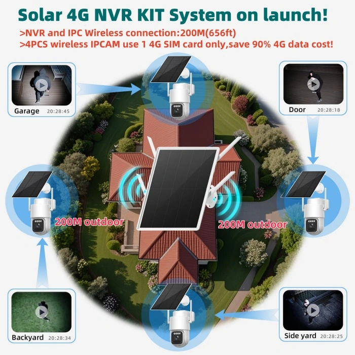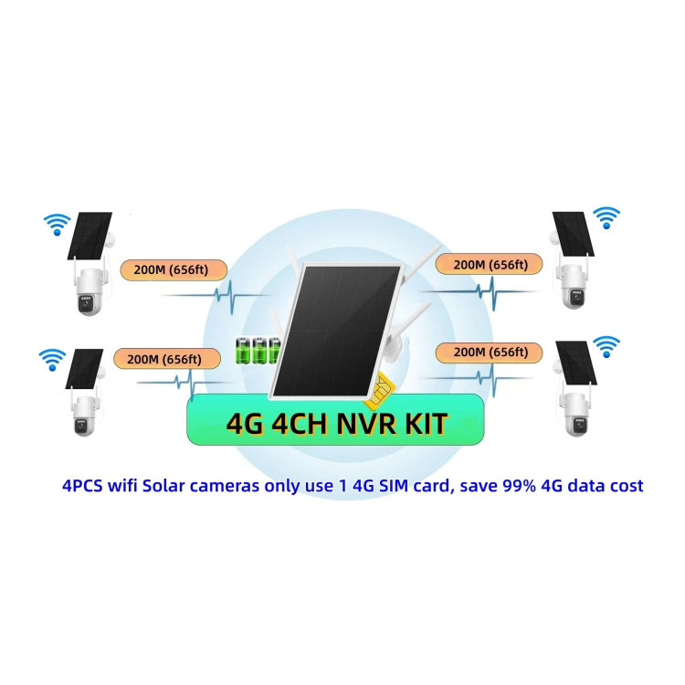 4CH 4G Solar-Powered Wireless NVR Security System | 4MP HD Off-Grid Surveillance Kit