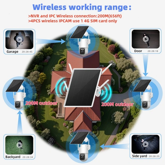 • Private Wireless LAN: The NVR and cameras form a dedicated local network with a transmission range of up to 200 meters, ensuring stable video even in vast open areas.